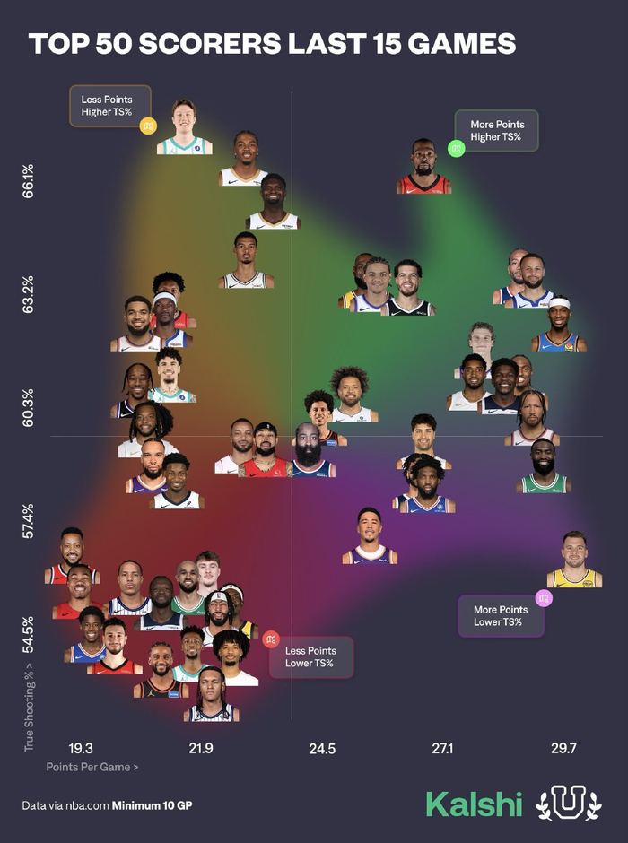 过去15场比赛得分榜前50球员⬆️ 效率更高➡️ 场均得分更高#休斯顿火箭[超话]#...